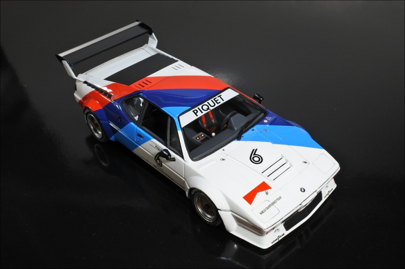 ...事關打算自行噴上橫跨車身的三條寶馬招牌顏色間條,雖然模型有提供貼紙,但車身太多凹凸表面和轉彎位,很難會黐得平滑而且貼紙與貼紙之間未必銜接到,所以索性自行間色噴上。三條間條分別配以淺藍(#34)、深藍(#322)、及紅(#3)代表。